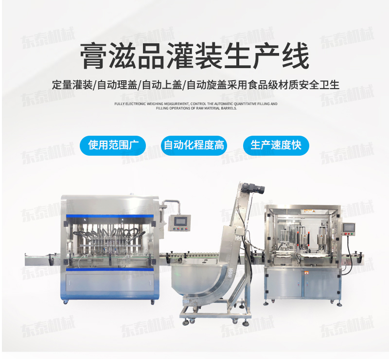 枇杷膏灌裝機生產線適用于各種1、各種膏滋如:秋梨膏、枇杷膏、鹿鞭膏、蜂蜜等的灌裝。2、調味醬如:香菇醬、辣椒醬、豆瓣醬、花生醬、芝麻醬、牛油火鍋底料、紅油火鍋底料。3、采用多規格的灌裝轉閥、灌裝頭,可適應不同客戶物料的灌裝需求。