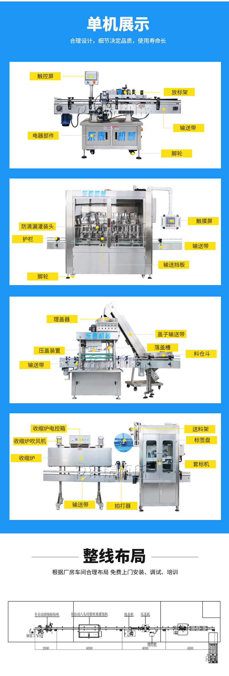 該醬油醋灌裝機采用活塞式伺服系統驅動原理,適用于粘流體中帶小顆粒并且可流動的較為粘稠的物料灌裝。比如:洗衣液、洗潔精、甜面醬、沙拉醬、芝麻醬、食用油等的灌裝。設備采用伺服系統定量推料,在人機界面數字化調節計量,并且可設定所需計量,觸摸屏一觸即達,而且可以單頭微調計量。操作簡單,維護方便,節省人工成本,生產效率更高。