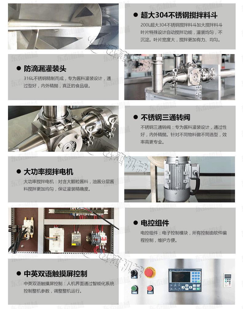 2、 醬料灌裝機設(shè)備全不銹鋼制作,衛(wèi)生、安全;
