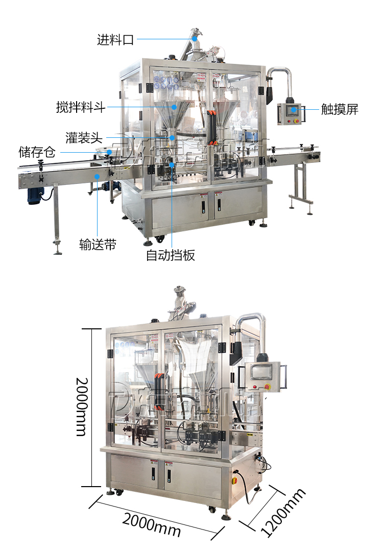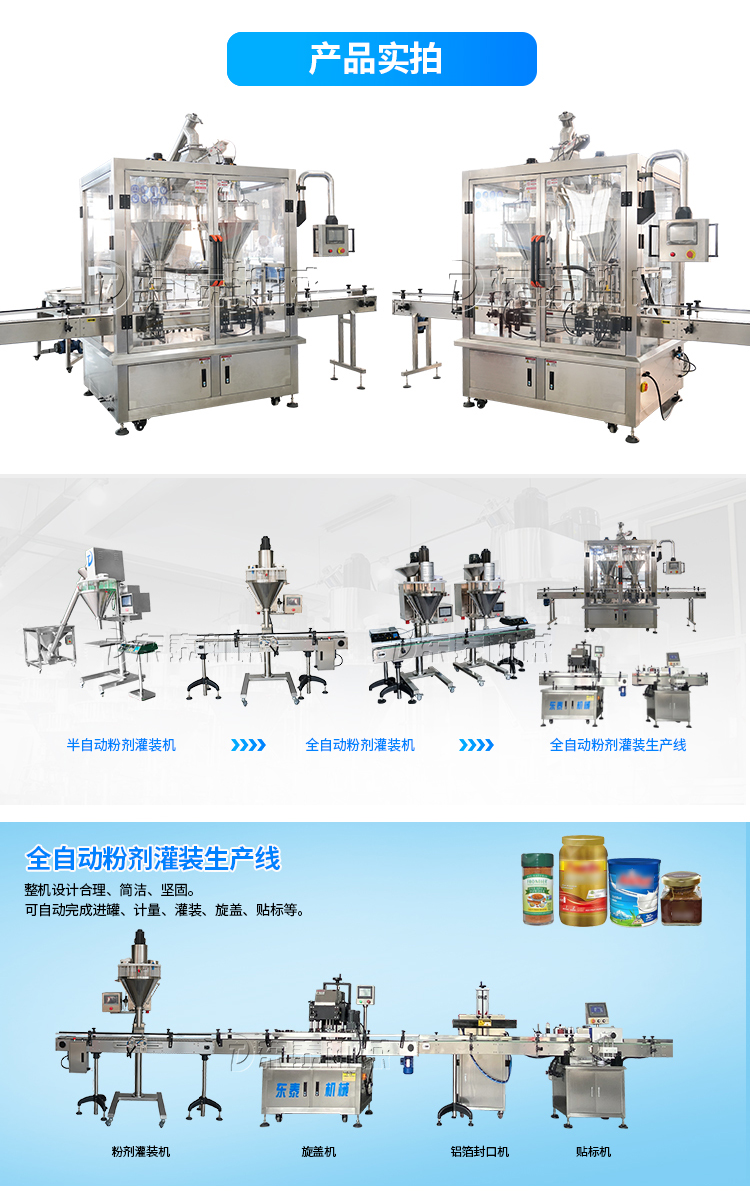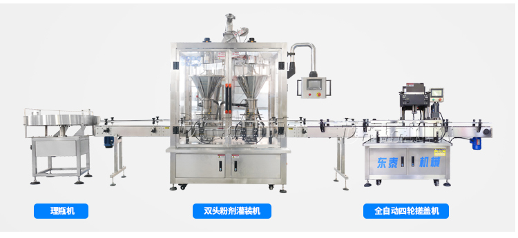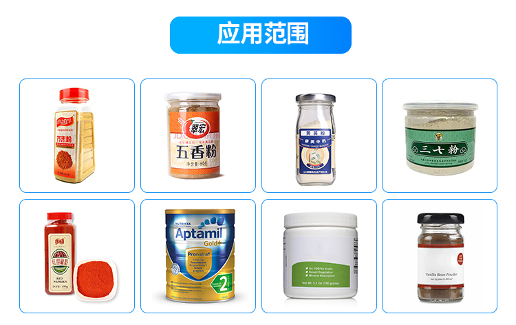自動(dòng)定量粉劑灌裝機(jī)該機(jī)是一種經(jīng)濟(jì)型粉劑和小顆粒自動(dòng)灌裝機(jī),可以完成瓶的自動(dòng)定位,灌裝和計(jì)量。它由一個(gè)灌裝頭,一條連接帶和—個(gè)定位裝置組成。或步進(jìn))電機(jī),PLC和蝕摸屏控制,操作簡(jiǎn)便,穩(wěn)定性高。它可以與開(kāi)瓶器,封蓋機(jī)和貼標(biāo)機(jī)結(jié)合形成一祭完整的灌裝線。適用于包裝粉末和小顆粒物料,例如粉末,小顆粒,獸藥,葡萄糖,調(diào)味品,體飲料,碳粉,滑石粉,農(nóng)藥等。