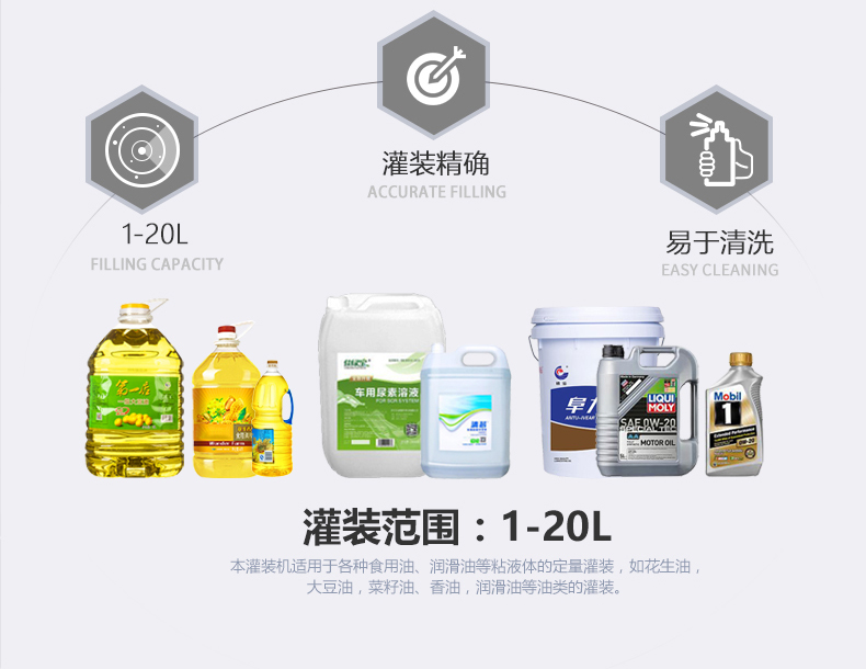 食用油幾乎是每家的必須品,我們平時做菜都離不開食用油,比如我們日常食用的油有調和油、花生油、大豆油、橄欖油等等... 這時候一款合適的食用油灌裝機對食用油制造廠家就變得極為重要,這系列的灌裝機都應用了流量計式計量的灌裝原理,榮獲了多項認證,能過適用于多種規格(1-5升)的南瓜籽油、榛子油、牡丹籽油、芝麻油、各種的食用油的灌裝作業。